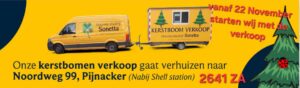 Is bijna weer zover. Vanaf 22 November start onze kerstboom verkoop weer. We zijn alleen verhuist. Voorheen stonden we op de kon, Julianastraat te Nootdorp. Maar ivm de bouw daar staan we nu OP NOORDWEG 99 TE PIJNACKER. Bij de Firma Brouwer (perkgoed kwekerij) . Vanuit Nootdorp net voor de Shell vanuit Pijnacker net na de shell.